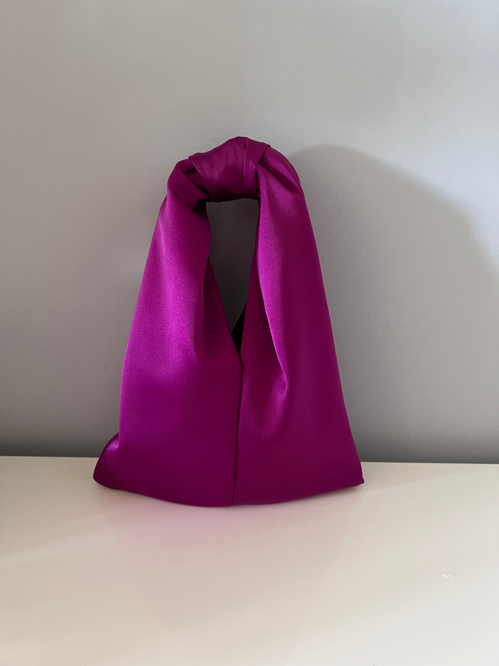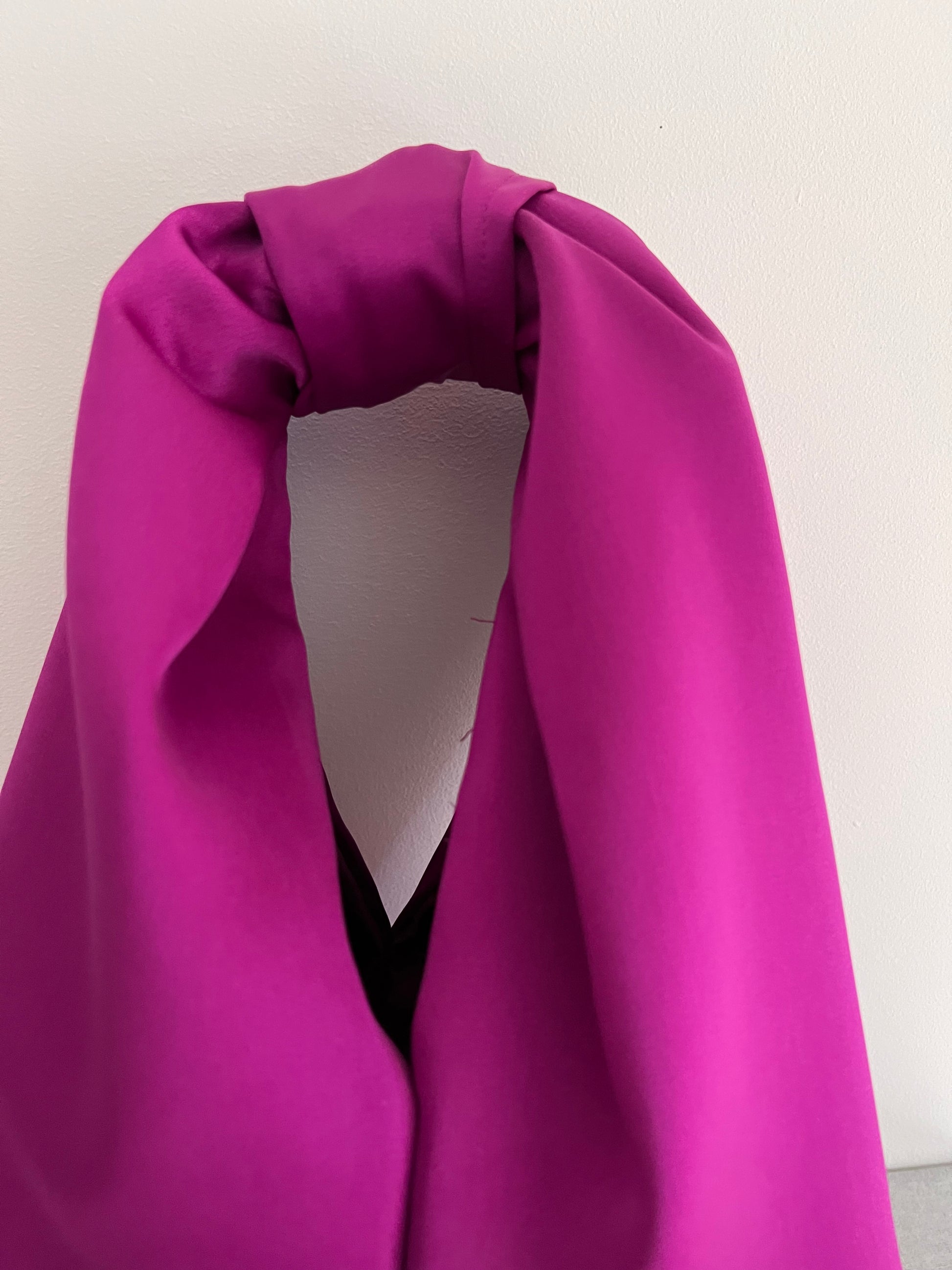 Modelo Serena, confeccionado en tela satinada color buganvilla.