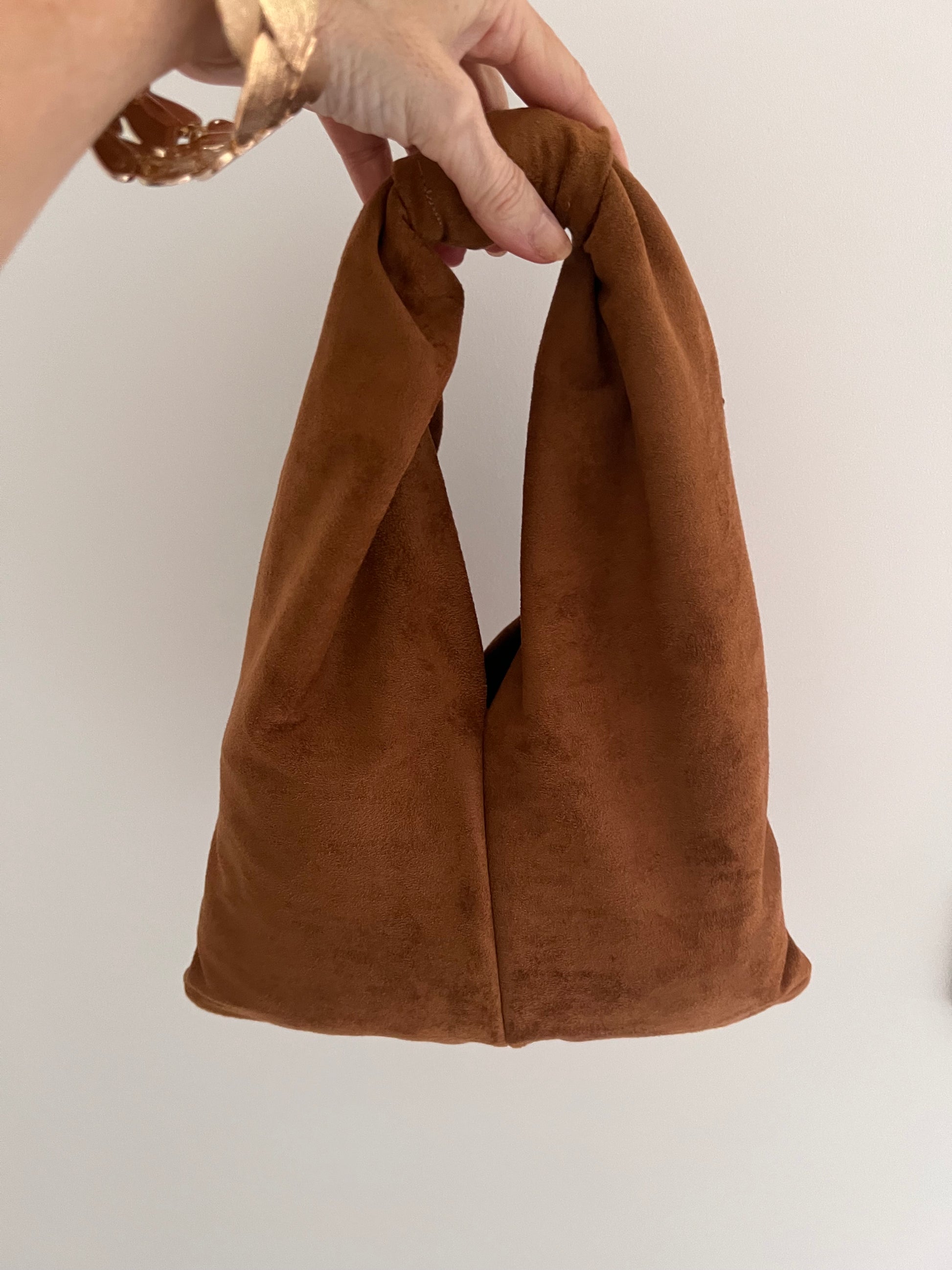 Modelo Serena, confeccionado en antelina suave, con acabado aterciopelado en tono tierra profundo.